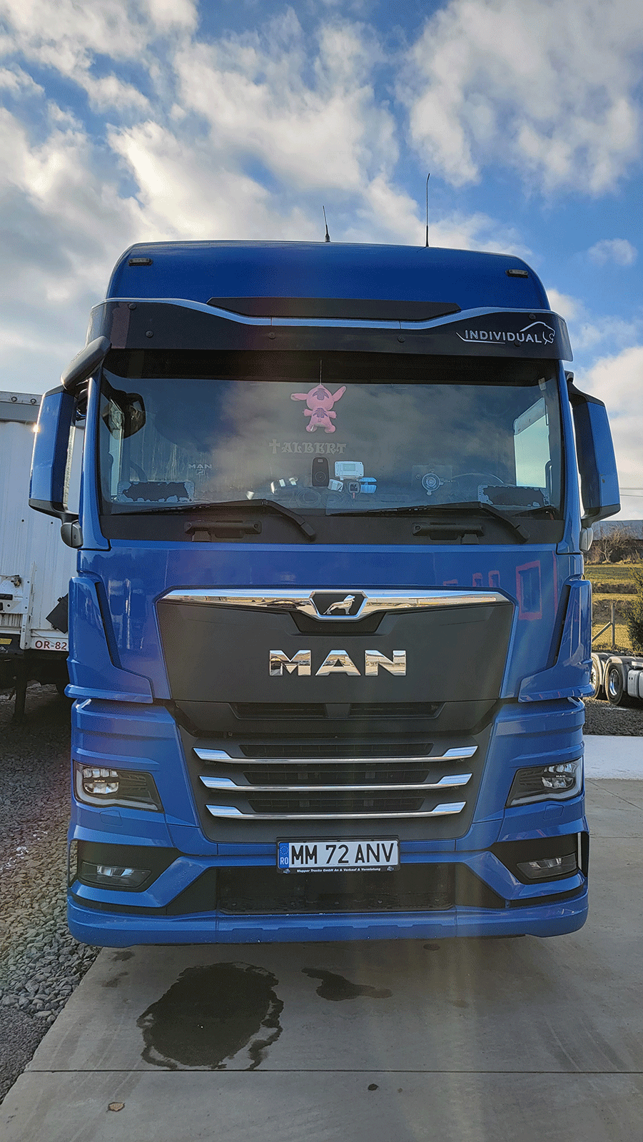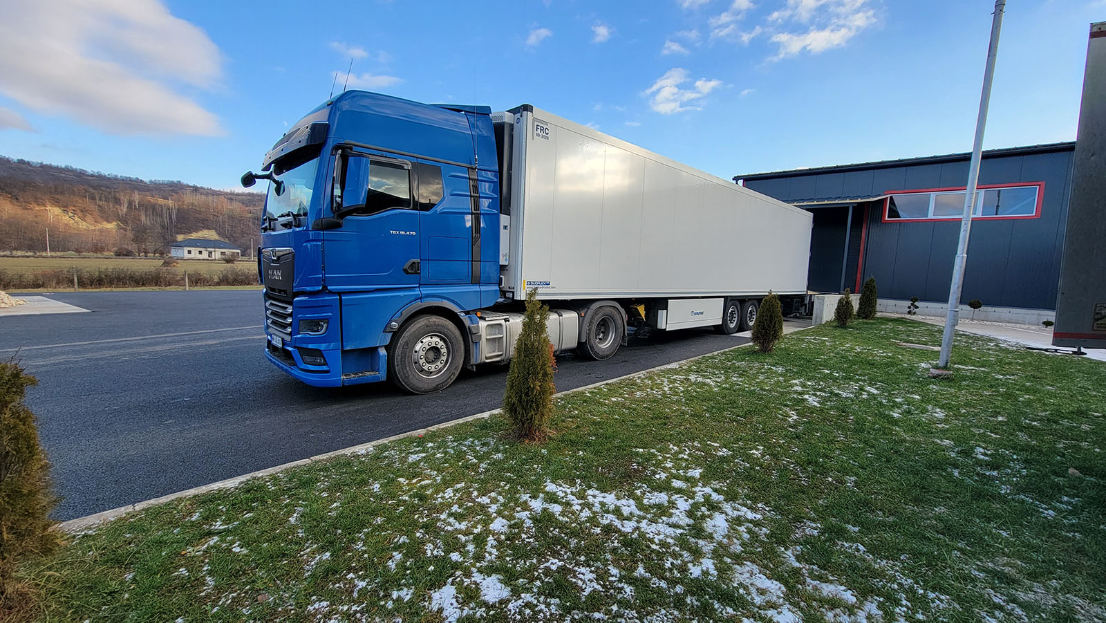 Marfa dvs. este transportata intr-un camion/tir condus de un echipaj format din doi soferi, pentru a ajunge mai repede la destinatie.